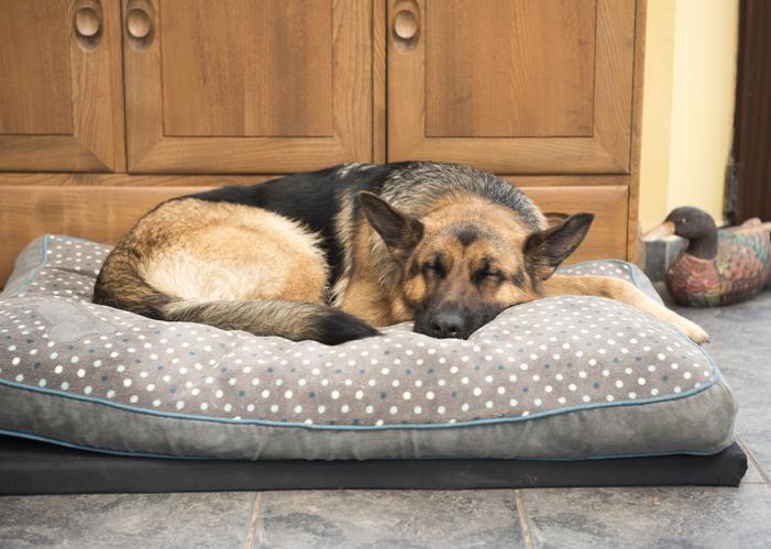 Por otra parte, para proteger sus articulaciones y evitar dolores, el material más adecuado es la espuma viscoelástica ya mencionada. También podemos utilizar un colchón para personas e incluso encontraremos camas ortopédicas especialmente diseñadas para perros que pueden ser ideales para los más mayores.