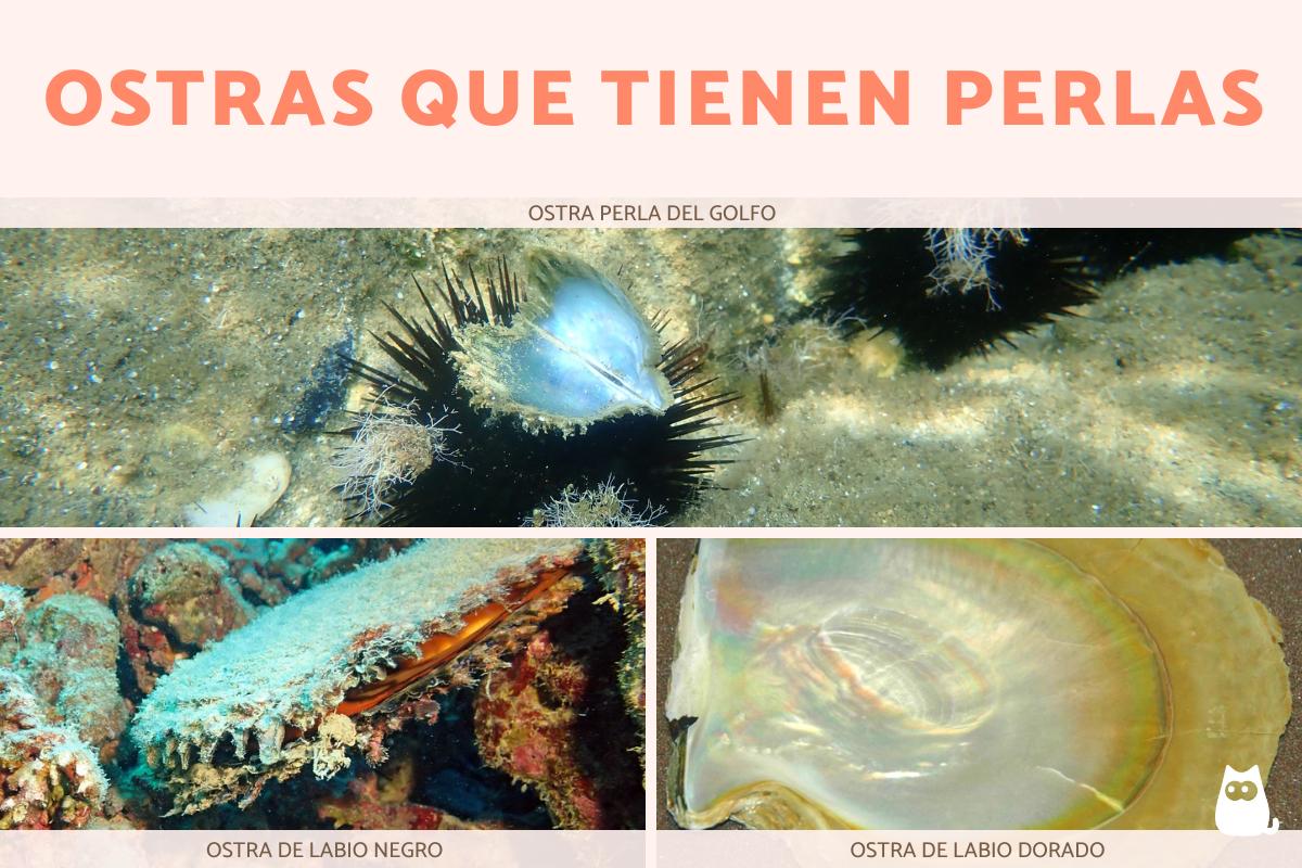 En cuanto a las ostras que tienen perlas de nácar y que son más explotadas, encontramos: