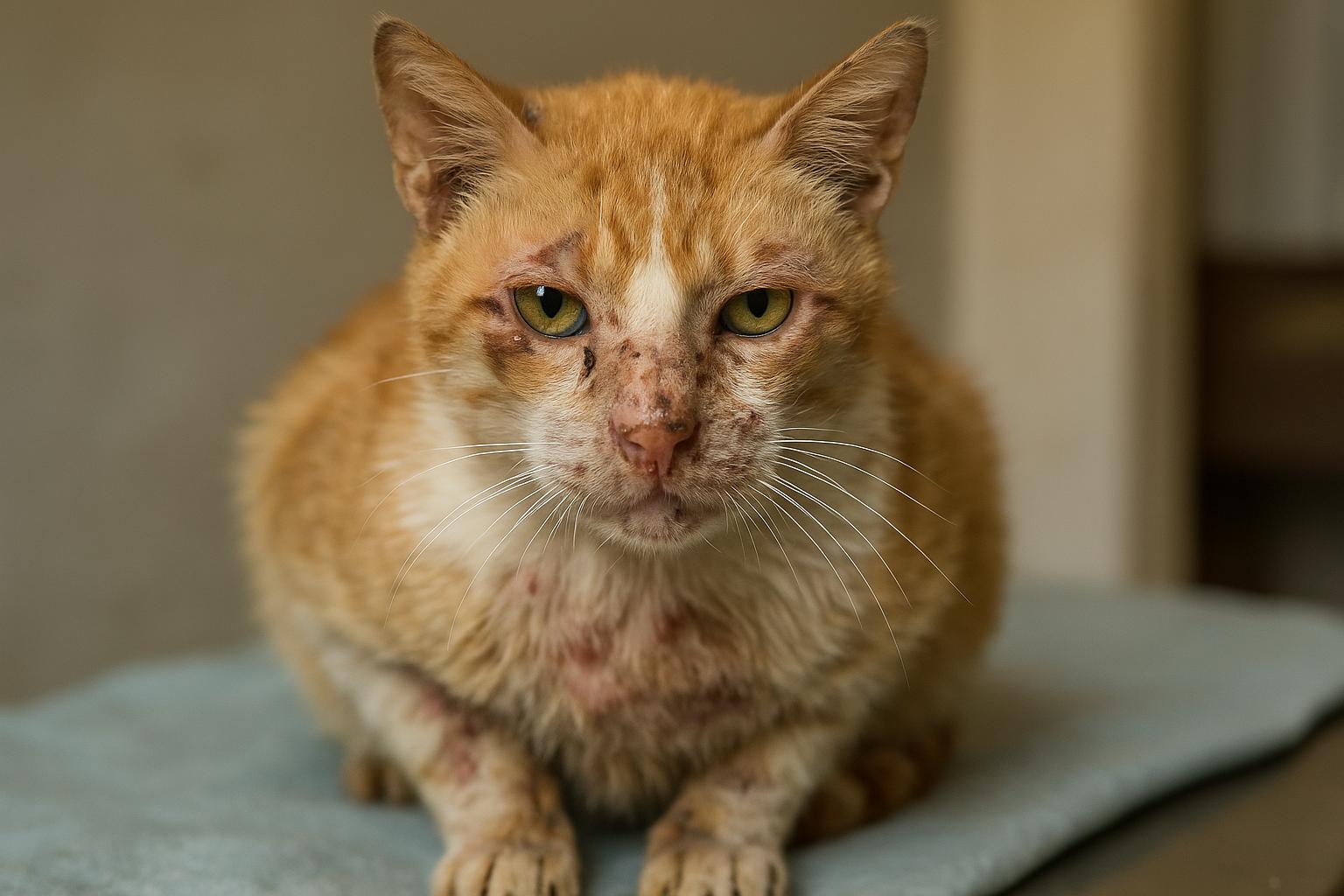 Entre los síntomas cutáneos de la leishmaniosis felina se encuentran lesiones crónicas y de difícil cicatrización, que suelen aparecer principalmente en la cabeza, las orejas, el hocico o las patas, como: