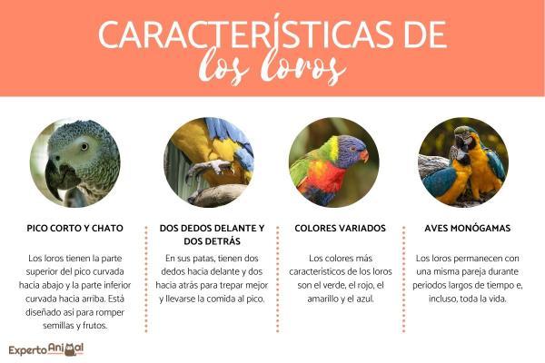 Las características de los loros varían ligeramente según la especie. Por ello, te animamos a leer este otro artículo de ExpertoAnimal sobre Tipos de loros - Características, nombres y fotos.