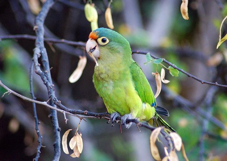 El loro de frente naranja (Eupsittula canicularis) se distribuye por el sur de México y Centroamérica, desde Guatemala hasta Costa Rica. Viven en bosques de altitud moderada, donde forman amplias comunidades que duermen y se alimentan juntas. Para ello, forman grupos de forrajeo, como hemos explicado previamente.