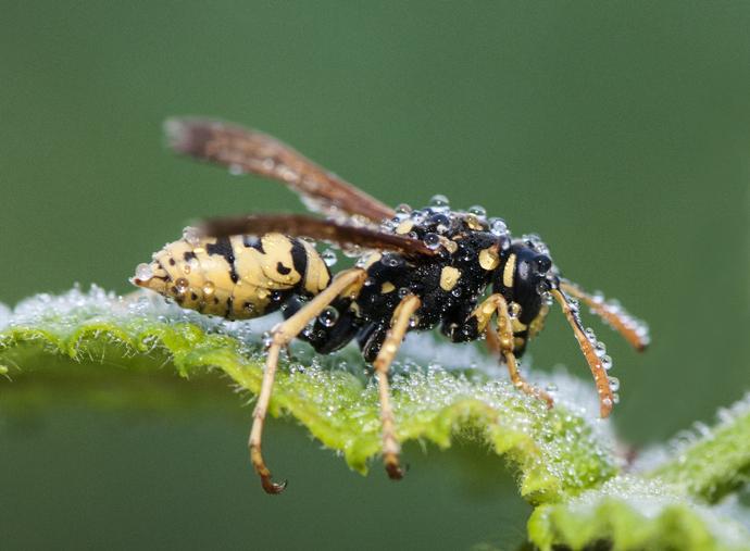 La avispa cartonera es una especie de 2 cm de largo, su coloración es negra con marcas amarillas y posee un abdomen plano con cintura estrecha. Su dieta está compuesta por frutas y es nativa de Europa y África, sin embargo, en la actualidad se encuentran también en varios países de América.