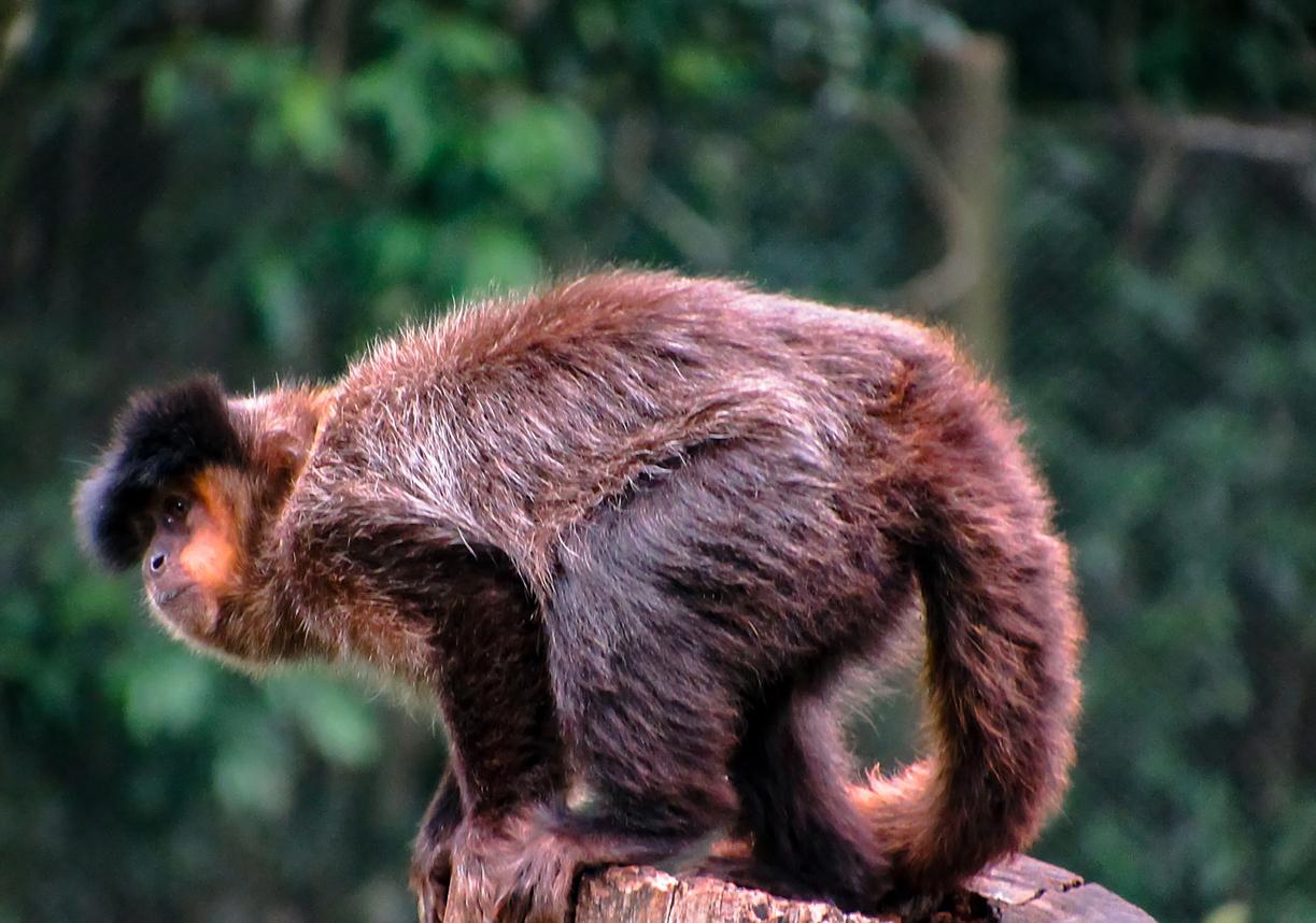Es nativo de Brasil, se desarrolla en hábitats variados que incluyen bosques secos, caducifolios, manglares y bosques de galería. Posee una dieta amplia que incluye frutas, semillas y pequeños animales. Es capaz de apoyarse en el uso de herramientas para obtener el alimento. Está clasificado como casi amenazado por la fuerte caza a la que está sometido.