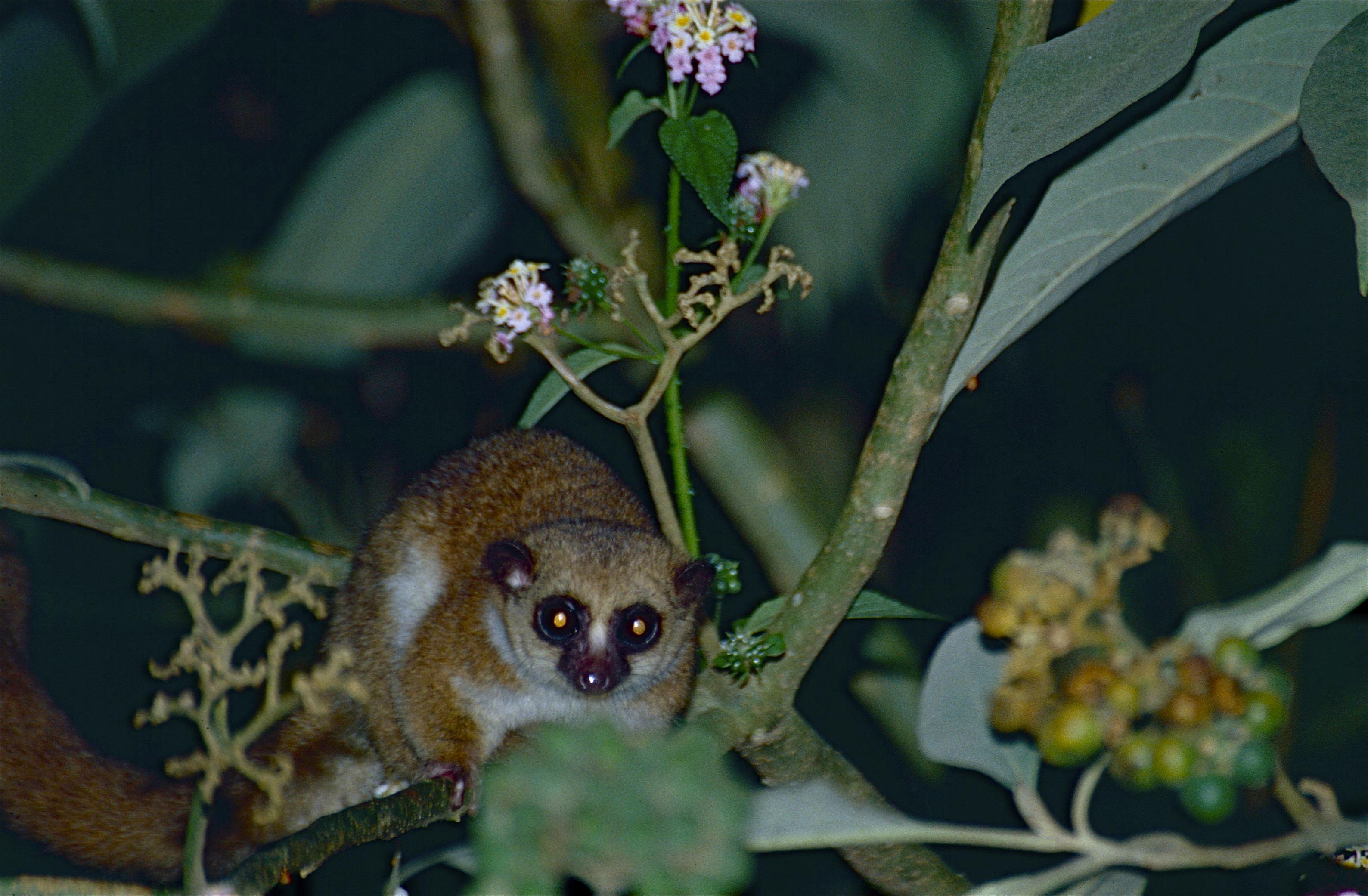El Gálago enano (Galagoides demidoff) es nativo de África, considerada la especie más pequeña de este continente. Tienen una longitud promedio de 12 cm excluyendo la cola que tiene una media de 25 cm y el peso oscila entre los 45 y casi 90 gr. El pelaje va desde rojo brillante a marrón grisáceo.