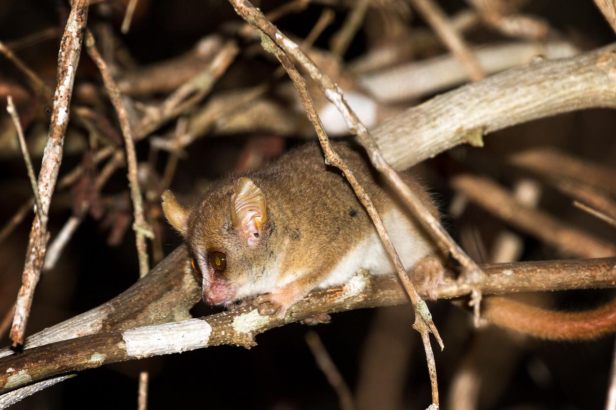 Su hábitat son bosques caducifolios secos y tiene una alimentación omnívora basada en frutas y goma de los árboles, pero en la estación seca recurre a los insectos. La destrucción generalizada del hábitat para el desarrollo de la agricultura, ha hecho que la especie sea clasificada en estado crítico de extinción.