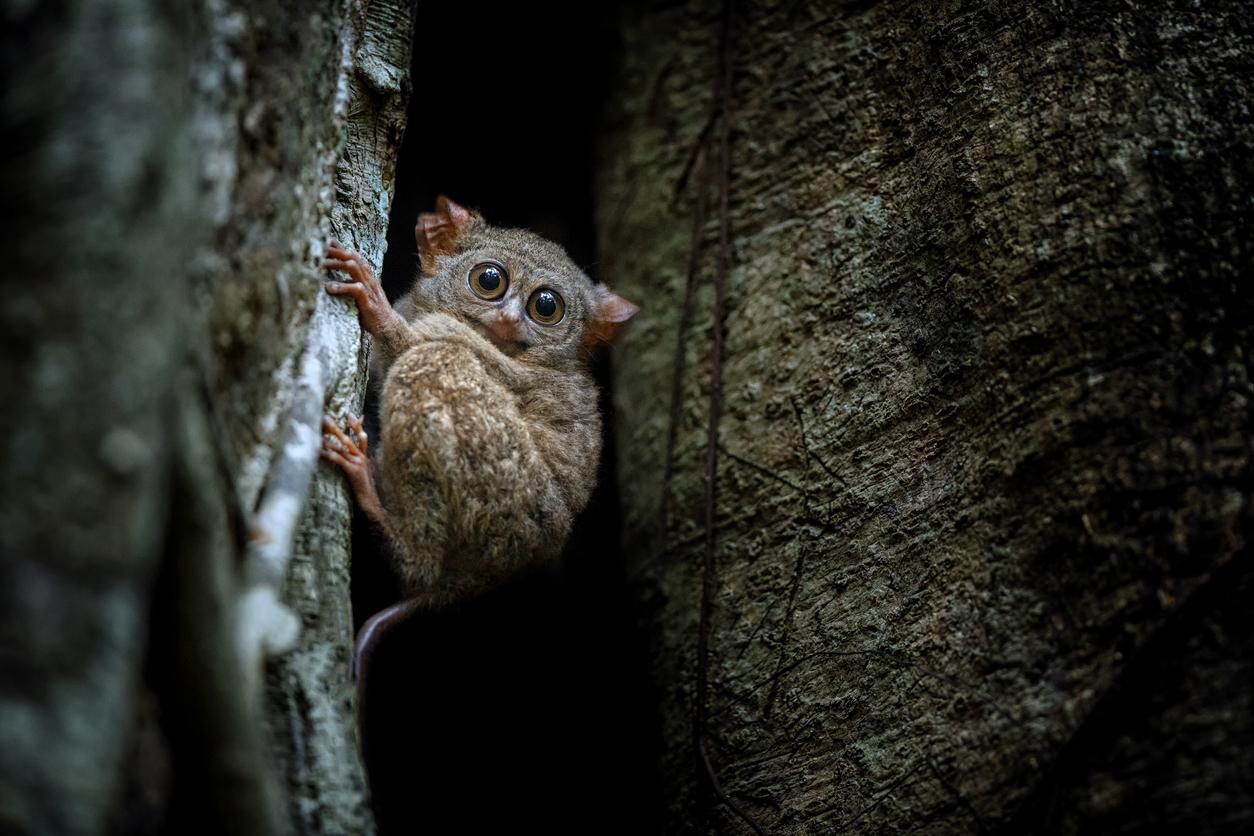 El tarsero fantasma (Tarsius tarsier) es una especie de primate nativo de Asia, específicamente de varias islas de Indonesia. Los machos pesan entre 118 y 130 gr, mientras que las hembras son más pequeñas, con pesos que van desde los 102 a los 114 gr. El cuerpo mide en promedio unos 15 cm sin incluir la larga cola que puede incluso superar los 20 cm. Sin embargo, sin duda también se encuentra entre los monos más pequeños.