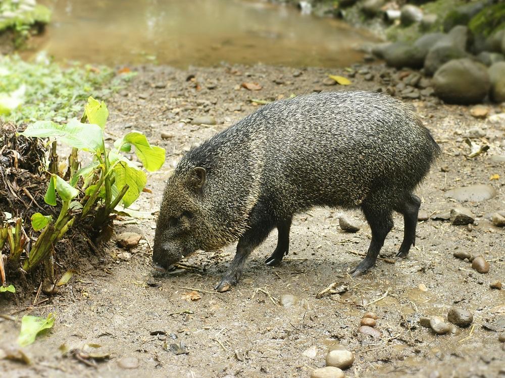 El pecarí de collar (Pecari tajacu) se distribuye en el continente americano de norte a sur. Su pelaje es casi todo negro, exceptuando una zona blanca alrededor de su cuello, la cual le otorga su nombre. Su distribución es amplia, pues habita tanto zonas desértica y sabanas hasta áreas tropicales, donde se alimentan de raíces, frutas, hojas e invertebrados. Los principales enemigos del pecarí son la desforestación, la contaminación y la caza.