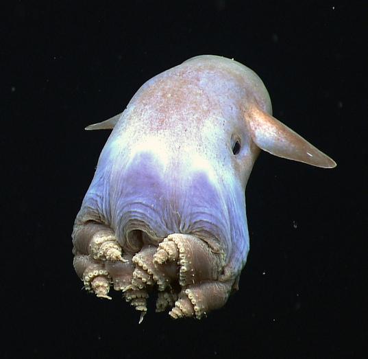 El pulpo dumbo recibe este nombre gracias al famoso elefante animado. Si bien no es aterrador como otros de sus compañeros de esta lista, es uno de los animales marinos más raros del mundo. Es un animal pequeño que mide hasta 20 cm y que pertenece a un subgénero de pulpos que aprecian la vida en la oscuridad flotando entre los 3.000 y 5.000 m de profundidad. Se han visto en lugares como Filipinas, Papúa, Nueva Zelanda y Australia.