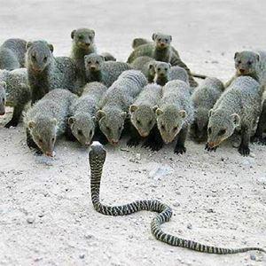 El meloncillo, Herpestes ichneumon, es una de las mangostas más comunes. Esta mangosta, al igual que otras especies de herpéstidos, tienen en su dieta la ingesta de serpientes, algunas de ellas venenosa. El meloncillo mide hasta 60 cm., y su peso oscila entre 2 y 4 Kg. Si es acorralado no duda en enfrentarse contra leones.