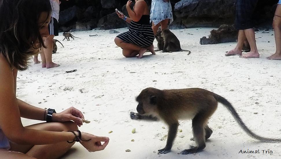 Son muy famosas las playas en las que los monos piden comida a los turistas, así como los templos que tienen colonias de monos a su alrededor. Estos animales pueden enfadarse si no obtienen lo que quieren o si se sienten amenazados, también son un grupo portador de la rabia. Pero estas colonias domésticas suelen ser muy pacíficas y curiosas.