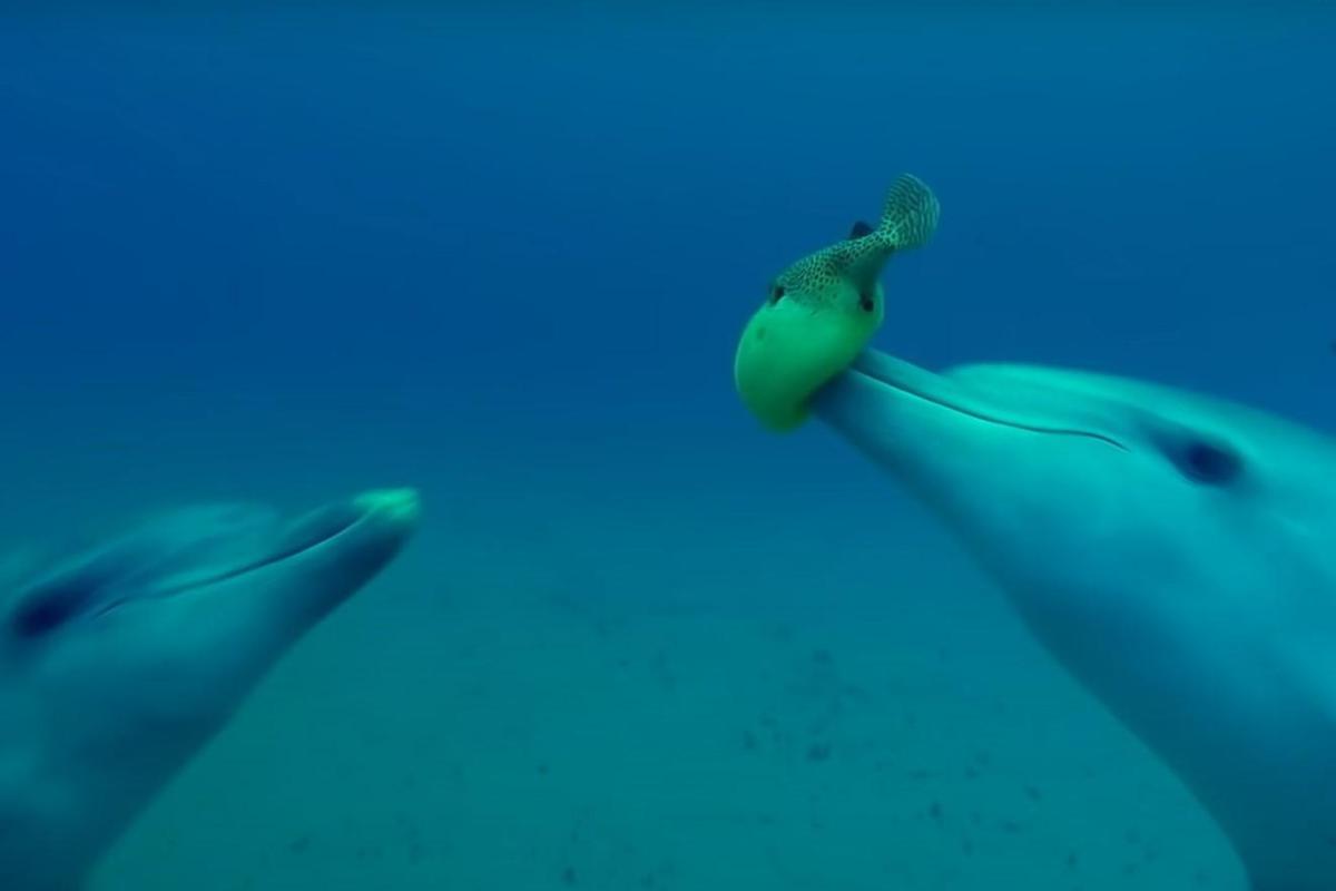 Ya antes del mencionado documental se había reportado en medios de difusión que los delfines eran capaces de usar peces globo para drogarse. Esto lo hacen a partir de una sustancia muy tóxica que estos producen y utilizan como defensa.