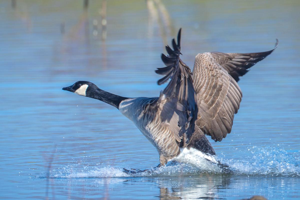 Los gansos para volar combinan fuerza, técnica y algo muy importante, la estrategia. Estos inician una carrera corta, en una superficie plana que puede ser dentro del agua o en tierra firme, a la vez que baten vigorosamente sus alas para generar el impulso necesario y así despegar.