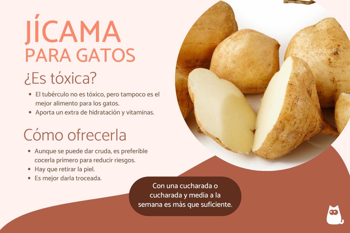 La jícama puede ser un snack interesante para ofrecer a nuestros pequeños felinos como un refuerzo vitamínico y de hidratación en su dieta principal, que debe estar basada en proteína proveniente del tejido animal, ya que solo esta cubrirá sus necesidades nutricionales fundamentales.