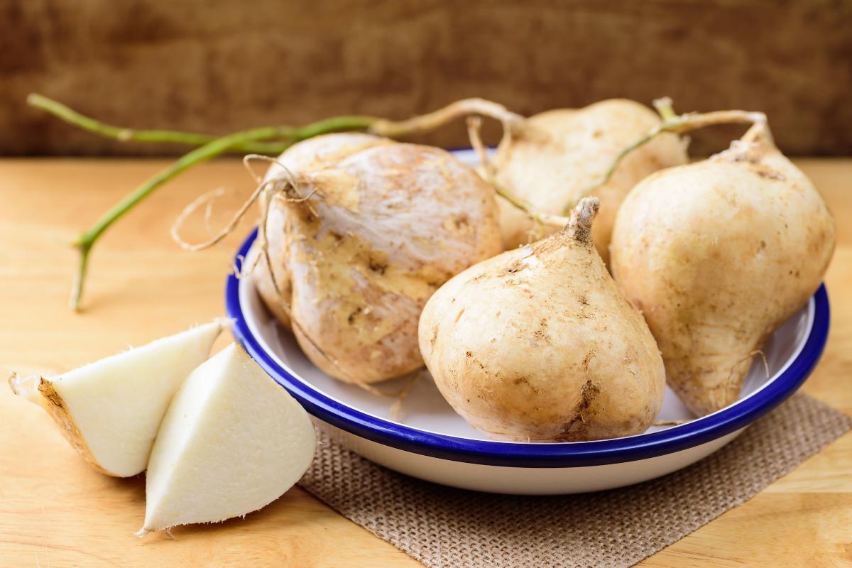 La jícama es un tipo de tubérculo también conocido como nabo mexicano. Aunque el término "jícama" se utiliza para designar a la planta en su totalidad, en realidad nos referimos a la parte comestible o tubérculo, ya que las semillas y las hojas son tóxicas y no deben ser ingeridas. Este alimento tiene su origen en México y América Central, aproximadamente en el año 3 000 a.C. Es ampliamente consumido y posee una variedad de nutrientes beneficiosos para la salud humana.