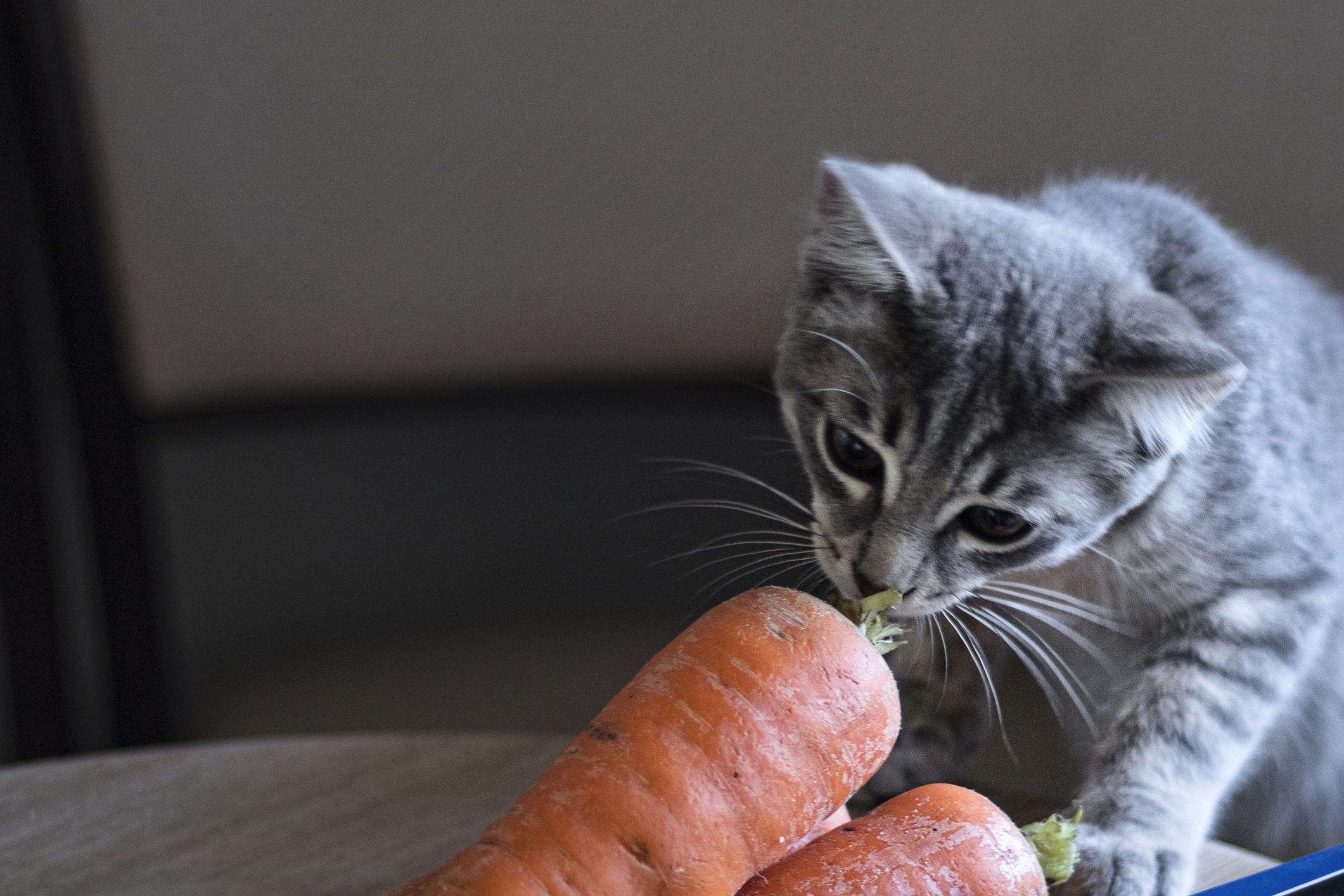 Ahora bien, aunque algunas dietas felinas, especialmente algunos sobres de comida blanda, puedan contener algo de zanahoria, los gatos son carnívoros estrictos, basándose su alimentación en el consumo de proteína de carne animal, no pudiendo subsistir con una dieta vegetariana o vegana basada en los hidratos de carbono, las vitaminas y las proteínas de las frutas y las hortalizas.