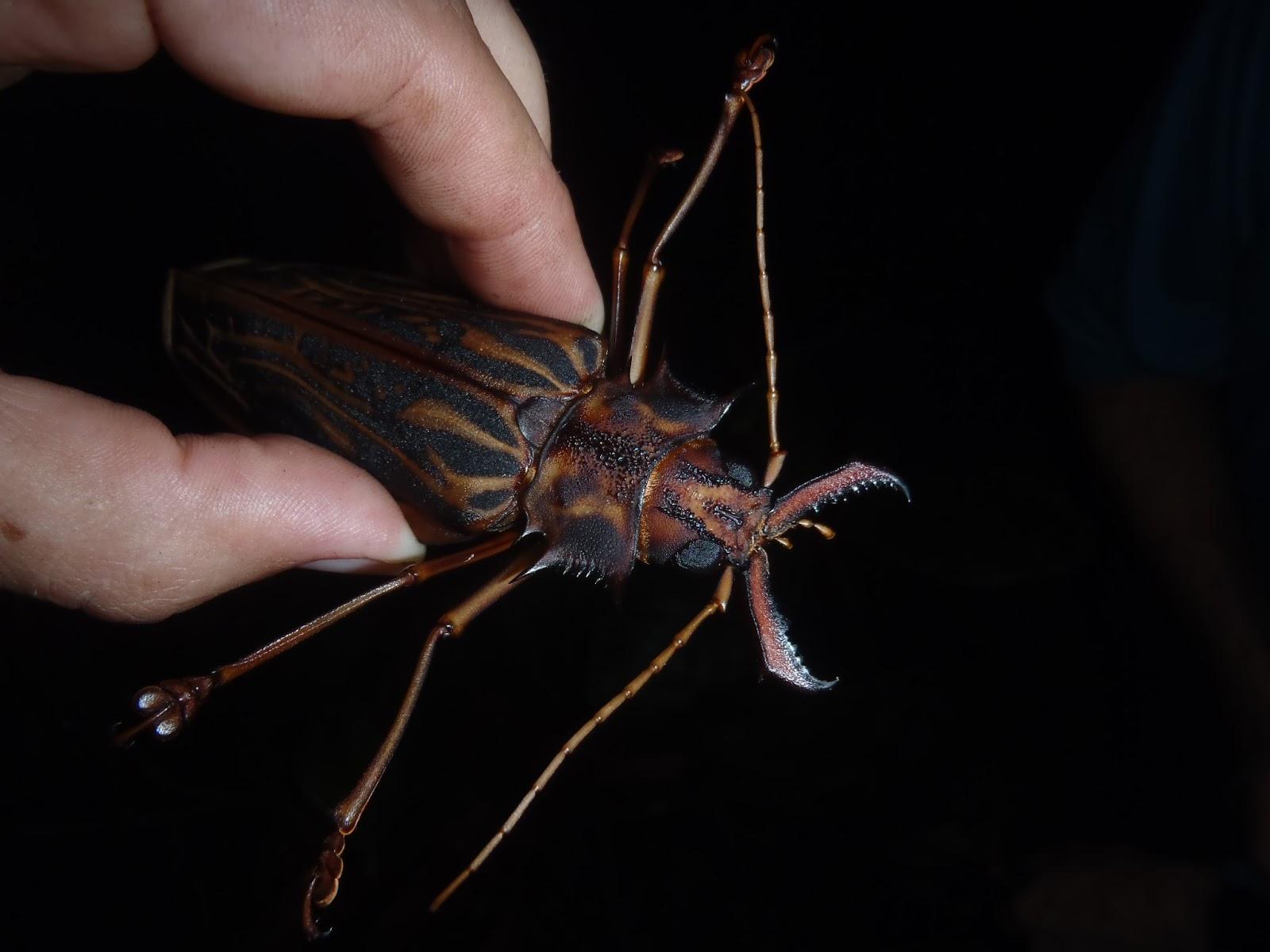 Este enorme cerambícido le disputa al escarabajo titán el título de mayor escarabajo del planeta. Tiene unas mandíbulas enormes, y es tan grande que posee parásitos (incluso pequeños escarabajos) entre sus alas.