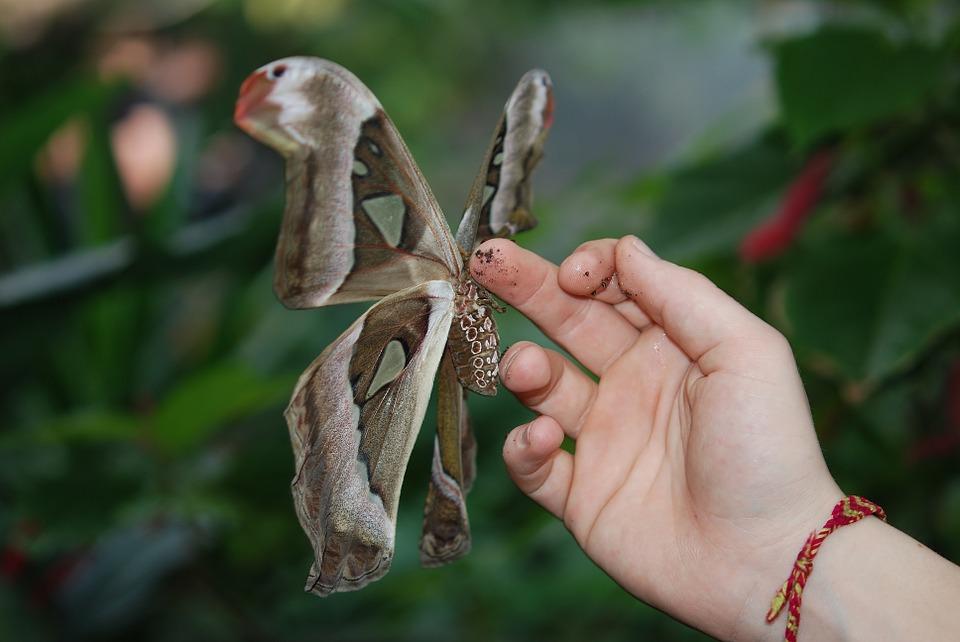 Esta gran mariposa, Attacus atlas, es el mayor lepidóptero del mundo, con una superficie alar de 400 cm2. Las hembras son mayores que los machos.