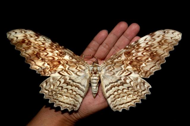 La famosa Thysania agrippina, conocida también como diablo blanco o mariposa fantasma, es el lepidóptero de mayor envergadura alar. Puede medir 30 cm. de punte a punta de sus grandes alas.
