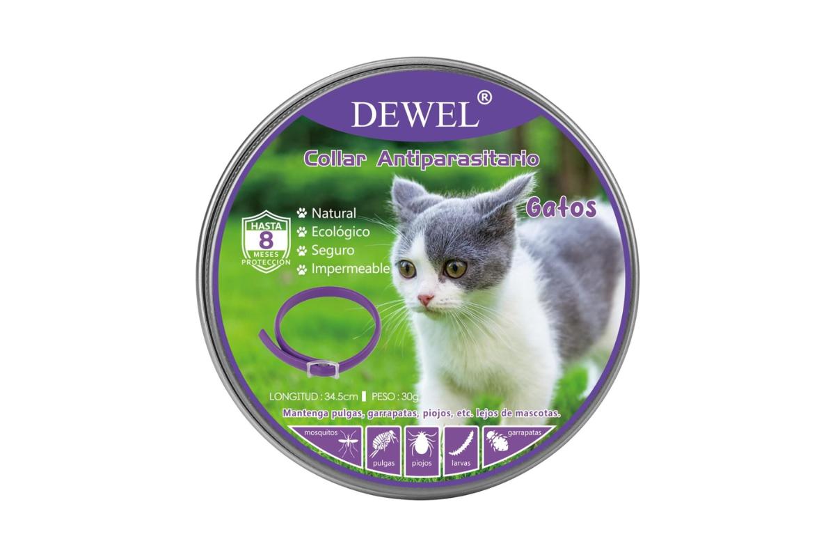 El collar antiparasitario Dewel destaca por su durabilidad y su efectividad en la prevención de parásitos externos en nuestros pequeños felinos.