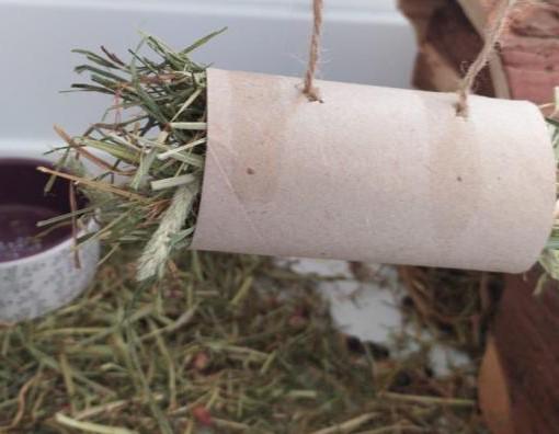 - Rellena el rollo de heno y cuelga el juguete, de modo que tu chinchilla pueda acceder al heno.