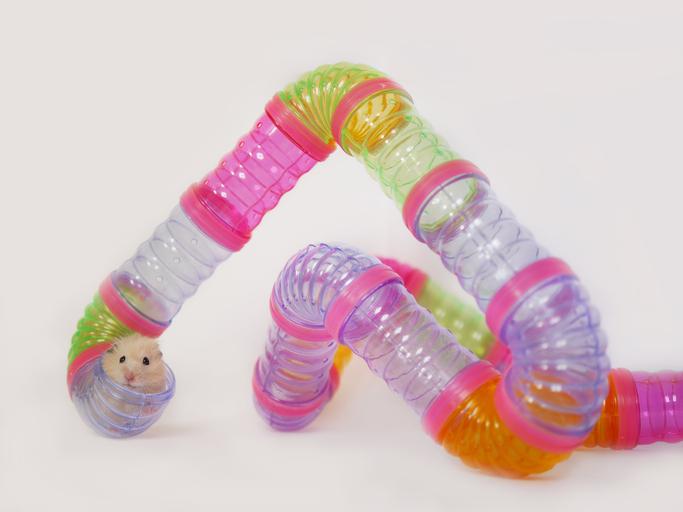 Los túneles o tubos son otros de los mejores juguetes para hámster. Lo estimulan a realizar actividad física, pues le permiten subir y bajar para recorrer los túneles. Además, los utilizan para esconderse cuando quieren.