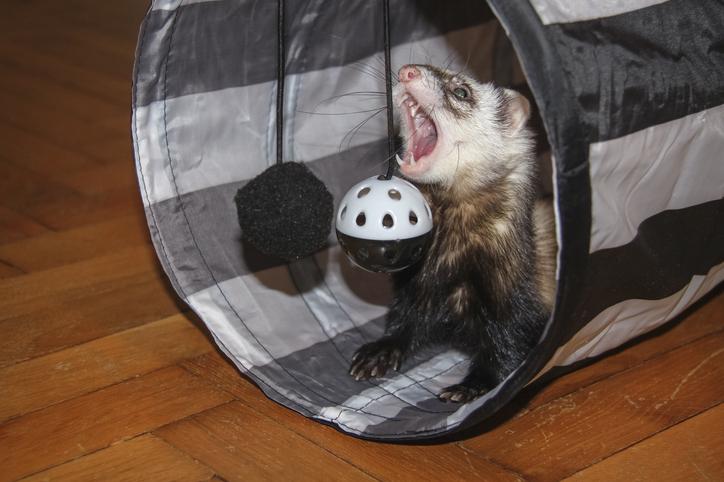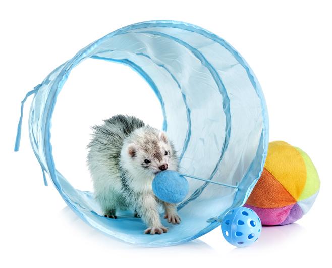 Lo más aconsejable es que tengas distintas clases de juguetes para poder ir ofreciéndole diferentes formas de diversión y estimulación. Contrariamente, si solo le das un solo juguete, tu hurón podría acabar aburriéndose y buscar entretenimiento en otra parte, por ejemplo, rompiéndote algún objeto de valor.