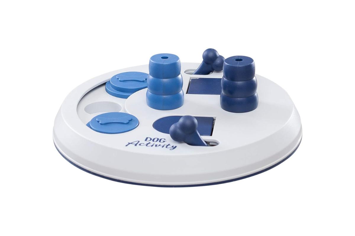 El dogworker es uno de los juguetes para perros hiperactivos que mejor pueden fomentar el desarrollo natural de su inteligencia. Se trata de un juguete de tamaño grande, en el que vamos a esconder premios y golosinas variadas en los lugares indicados. El perro, mediante el olfato y el movimiento de las fichas móviles, conseguirá sacar uno a uno los premios. Puede que te interesen estos "Juegos de inteligencia para perros en casa".