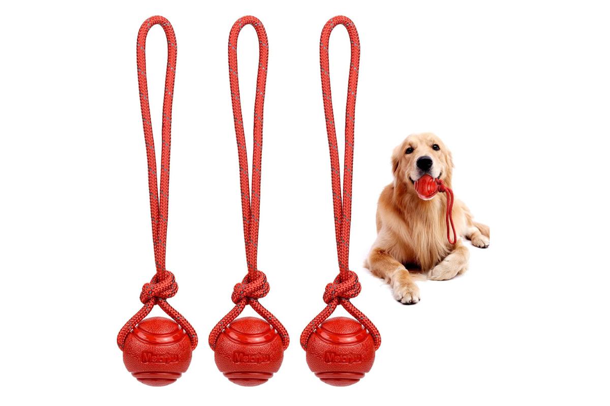 Las pelotas de goma con cuerda suelen ser duraderas y resistentes, lo que las hace ideales para perros que tienden a morder y masticar intensamente. Esto ayuda a prevenir que el perro destruya el juguete rápidamente. Además, la propiedad elástica de la goma permite que la pelota rebote cuando se arroja o se lanza. Esto puede estimular el instinto de perseguir y atrapar del perro, proporcionando una actividad física y mental que ayuda a canalizar su energía. Así, es uno de los mejores juguetes para perros hiperactivos.
