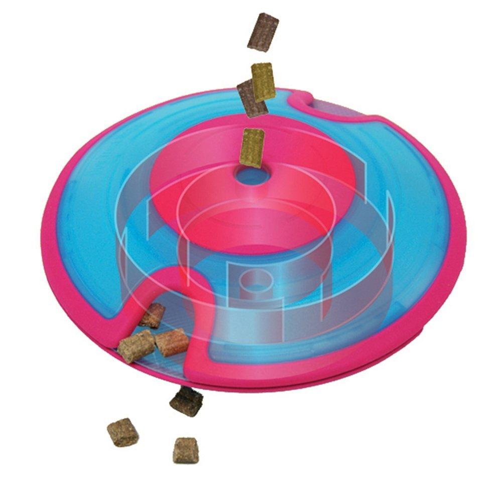 Aunque su forma es similar a la del dogworker, el treat maze ovni funciona de forma distinta. Primero tenemos que añadir golosinas o snacks para perros en su ranura superior. Una vez dentro, el perro deberá interaccionar con el juguete, de este modo las golosinas avanzarán por un pequeño laberinto interior y saldrán por las diferentes ranuras.