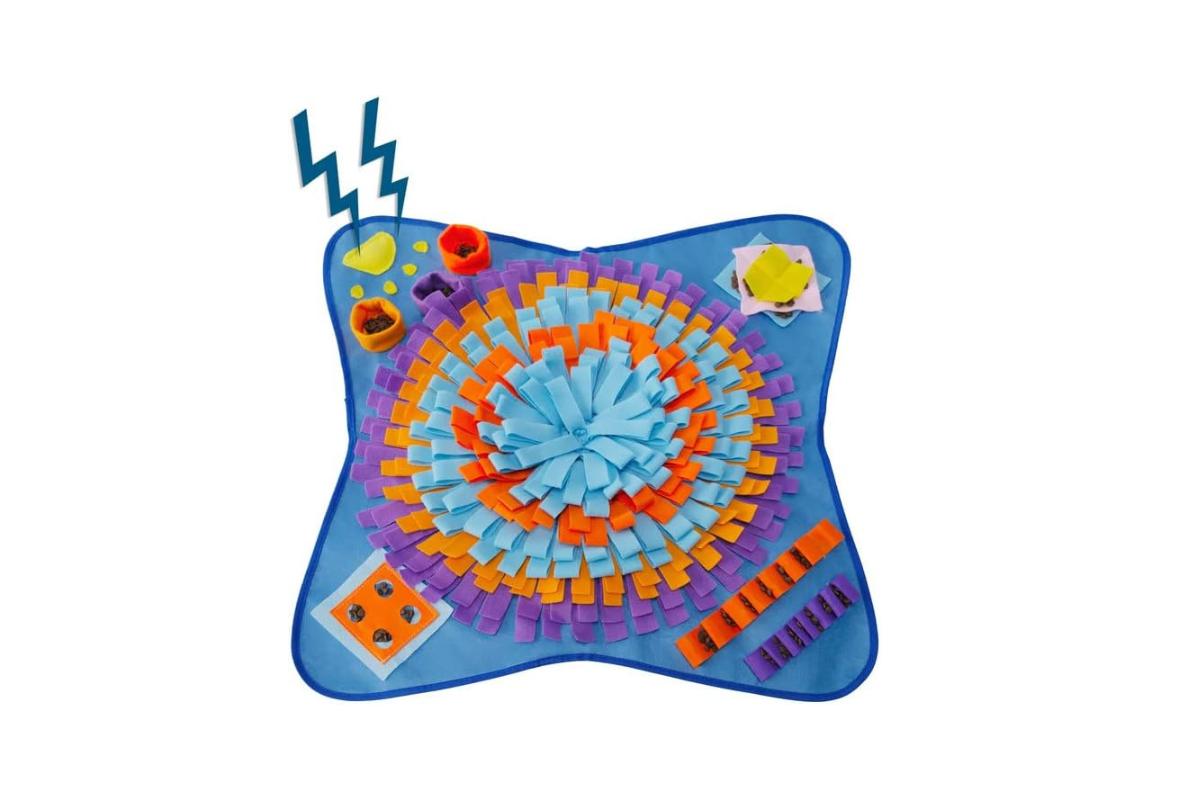 Una opción estupenda para tu chihuahua son las alfombras olfativas, una especie de tapete de tela con espacios y escondites donde puedes ocultar trocitos de comida. Una vez fuera del alcance de su vista, al perro no le queda más remedio que guiarse exclusivamente por su olfato para localizar cada premio y, al obtenerlo, se está auto reforzando esta búsqueda.