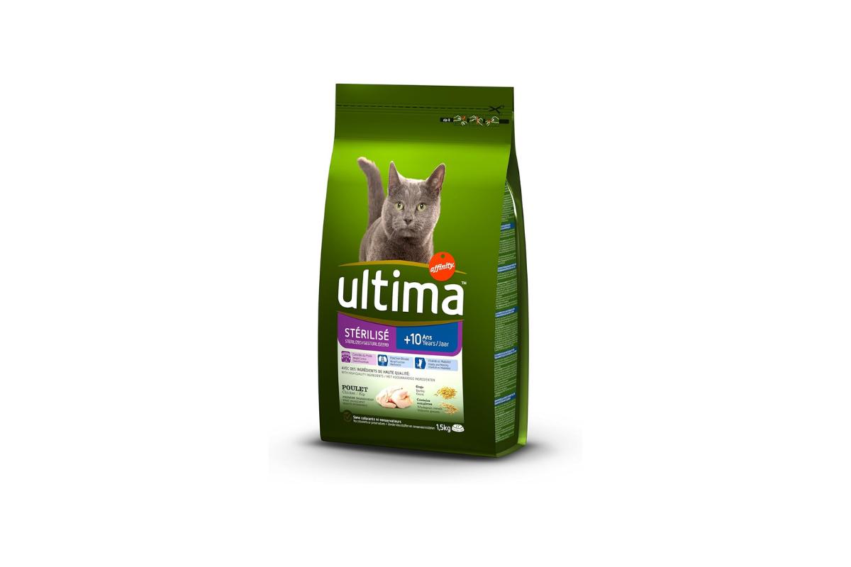Affinity ULTIMA Sterilise Senior pollo para gato +10 años se trata de un pienso para gatos senior esterilizados para mantener la función orgánica y vitalidad de nuestros gatos mayores esterilizados. También se encargará de ayudar a mantener sus huesos y dientes fuertes y su pelo y piel brillantes. Contiene una composición adecuada y equilibrada, con un porcentaje proteico similar al anterior, un 35%, pero está compuesto por menos ingredientes.