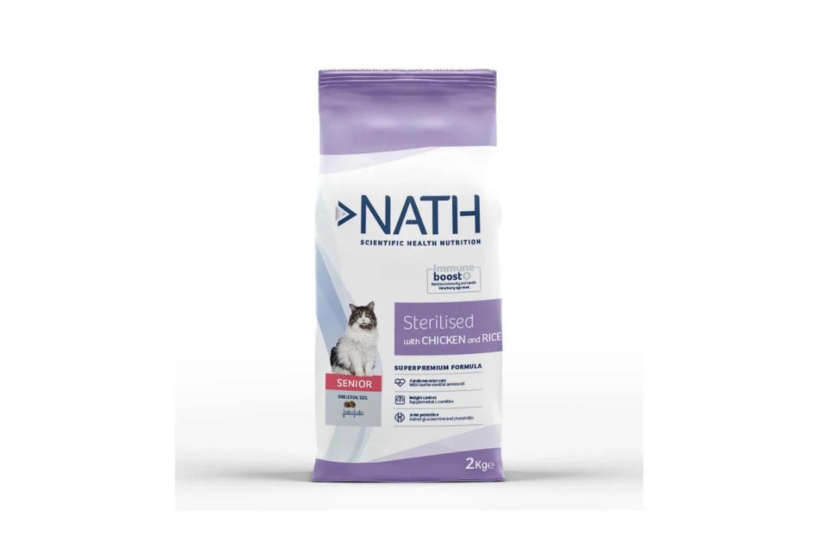 Otro pienso senior para gatos esterilizados es Nath Senior Sterilised, que, con L-carnitina en su composición, no olvida que aunque tu gato se haga mayor, el sobrepeso y la obesidad le puede seguir afectando, haciendo agravar sus posibles patologías o fomentar la aparición de las mismas. También contiene glucosamina y condroitina para fortalecer el cartílago articular.