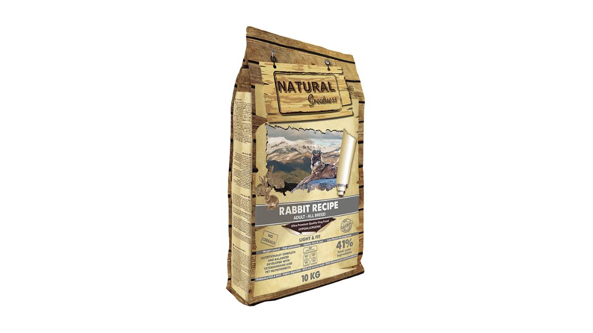 - Natural Greatness Rabbit Recipe Light & Fit: con carne de conejo fresca, deshidratada e hidrolizada (de los tres tipos) como principal ingrediente.