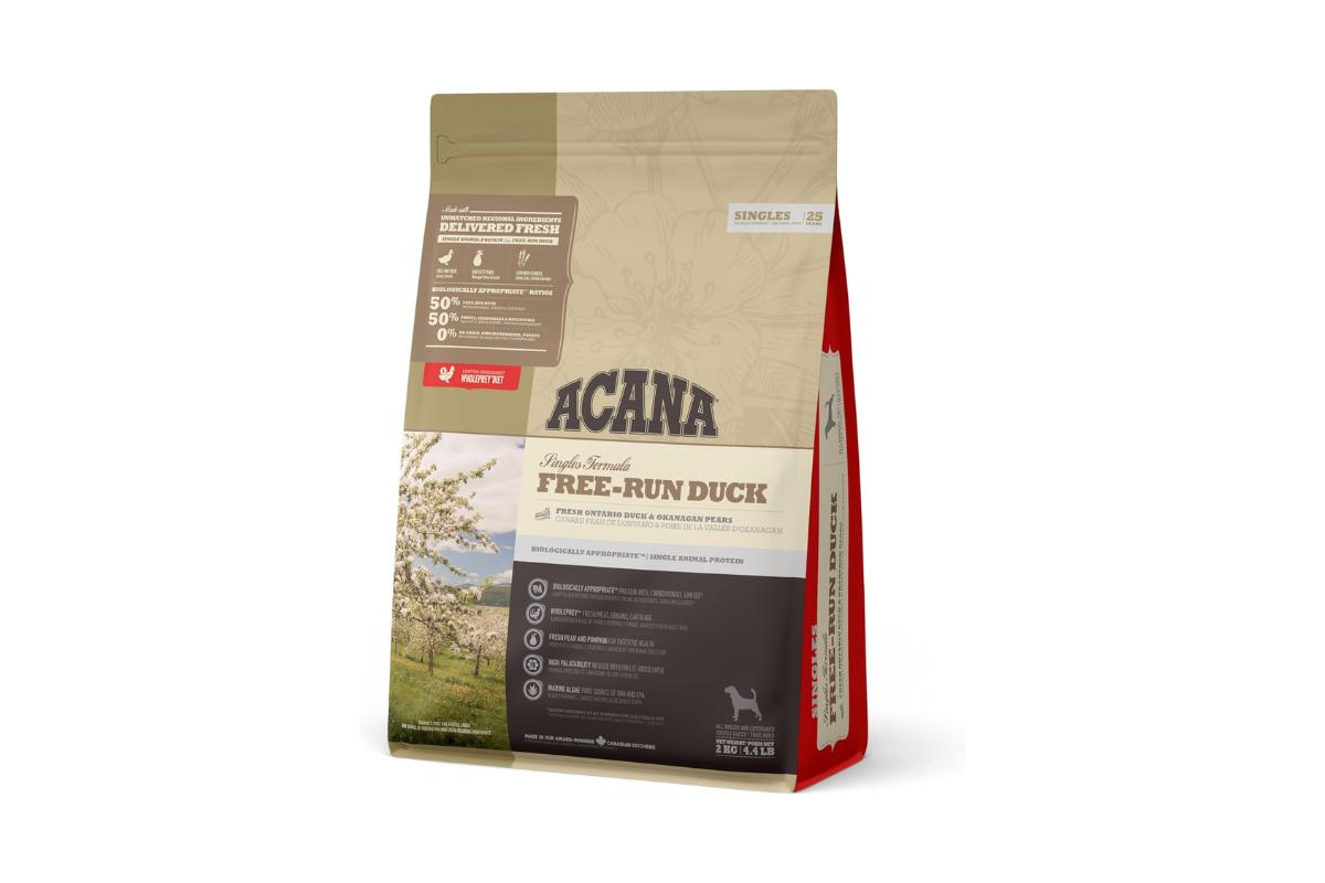 Acana comercializa piensos para perros adultos y cachorros. Se basan en ingredientes animales naturales y frescos que aportan proteínas de alta calidad. La carne es siempre el ingrediente principal de la receta, acompañada de frutas, verduras y plantas, buscando una receta lo más natural posible, en sintonía con la fisiología de los perros. En esta línea, incluyen presas enteras, con órganos y huesos.