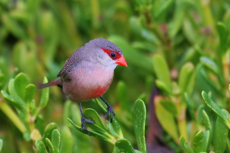 El pico del coral destaca por sus diminutos 8 centímetros. Este pequeño pájaro adora volar, esconderse entre las ramas y ejercitarse sin parar. Es de color marrón tierra y sus ojos muestran una sombra especial de color rojo, única y característica. Diferenciaremos a la hembra por la falta de mancha roja en el vientre, mancha que el macho sí muestra.