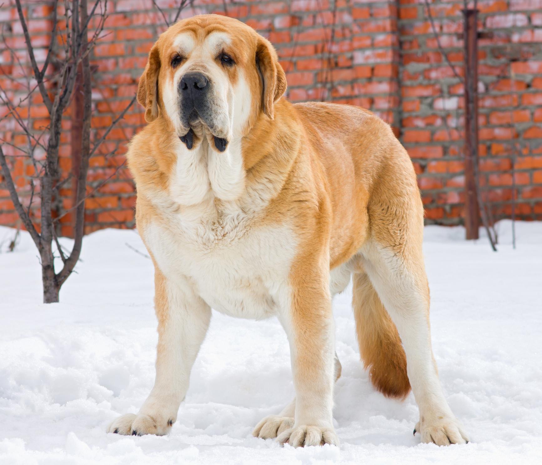 La quinta posición en el top 5 de perros más grandes del mundo la tiene el imponente mastín español. Es innegable que los mastines, en general, son perros de raza grande, pero el español destaca por ser uno de los que goza de mayores dimensiones. Los machos suelen medir 80 cm a la cruz (¡o incluso más!) y pesar entre 90 y 100 kg, mientras que las hembras se encuentran en los 70 cm y los 77 kg, aproximadamente.