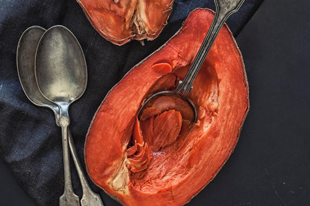 El mamey, o Pouteria sapota, es una fruta exótica originaria de América Central que se cultiva habitualmente en zonas tropicales de México, como Tabasco, Veracruz, Yucatán y Chiapas. Los frutos del árbol tienen forma ovalada, una pulpa de color naranja que contiene una semilla o hueso grande, y están cubiertos por una cáscara de color marrón. Esta fruta, compuesta por al menos un 75 % de agua, contiene cantidades elevadas de carbohidratos o azúcares, es decir, es rica en fructosa. Además, presenta cantidades importantes de: