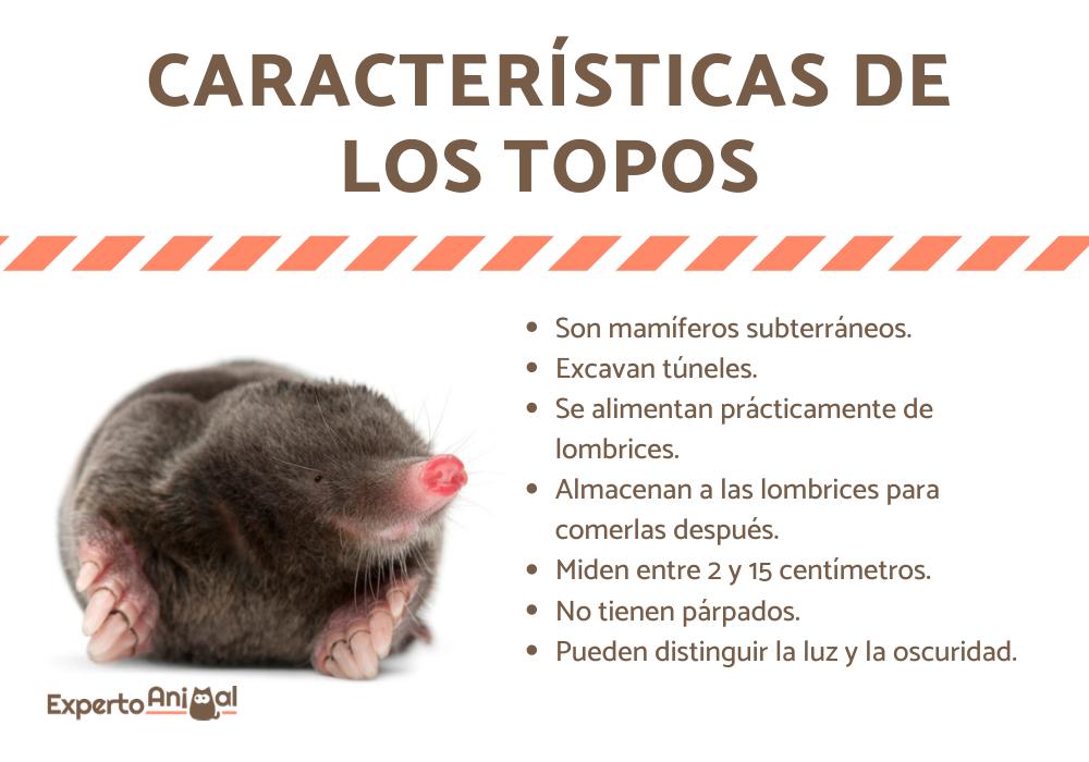 Los topos son mamíferos subterráneos pertenecientes a la familia de los tálpidos del orden Eulipotyphla. Estos animales se localizan en distintos países euroasiáticos y en Norteamérica donde excavan túneles aprovechándose de los terrenos blandos y ricos en nutrientes. Pasan prácticamente toda su vida bajo tierra, puesto que esto les ofrece una mayor protección frente a sus mayores depredadores, como por ejemplo las aves. Únicamente salen al exterior para reconocer el entorno en el que se encuentran o para cazar algunos insectos. No obstante, su dieta consiste principalmente en lombrices, las cuales muerden en un principio y posteriormente las almacenan dentro de los túneles hechos por ellos mismos para consumirlas en cualquier momento.