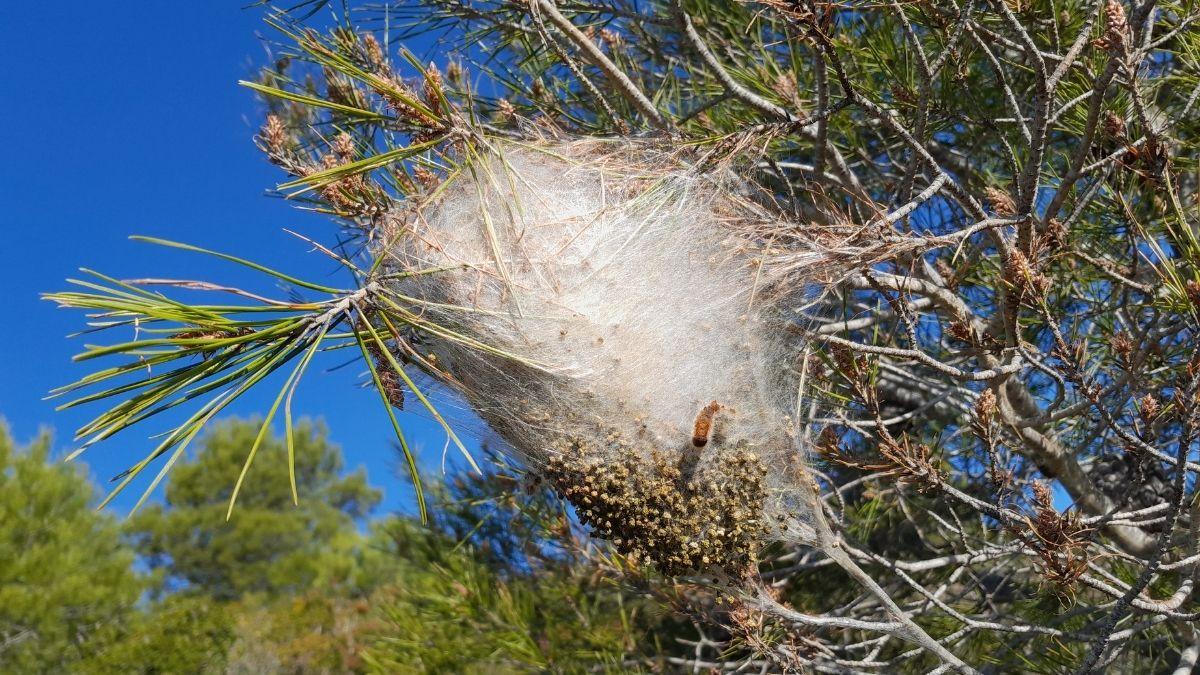 Si durante el paseo encuentras una oruga procesionaria, mantén a tu perro alejado y no intentes tocarla, ya que incluso los pelos en el suelo pueden ser peligrosos. Estas orugas son fáciles de identificar porque suelen formar nidos muy característicos. Estos nidos son blancos y sedosos, y se encuentran en las copas o ramas de los pinos. Normalmente, las orugas están activas hasta mayo, aproximadamente, y se desplazan principalmente por el suelo, formando grupos o largas filas.