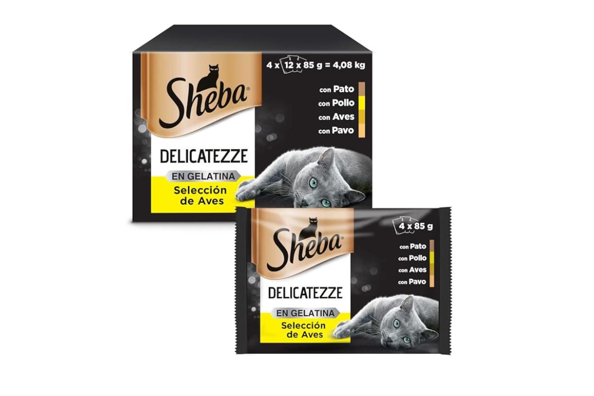 Otro pienso blando para gatos sin dientes es la gama de Sheba, que la podemos encontrar en el mercado disponible con varias texturas (mousse, salsa, paté y gelatina) y de diversos sabores como pavo, pollo, pescado y buey. Se trata de un alimento formulado sin alérgenos como el trigo, el maíz o la soja, por lo que se puede dar a los gatos sin dientes sensibles.