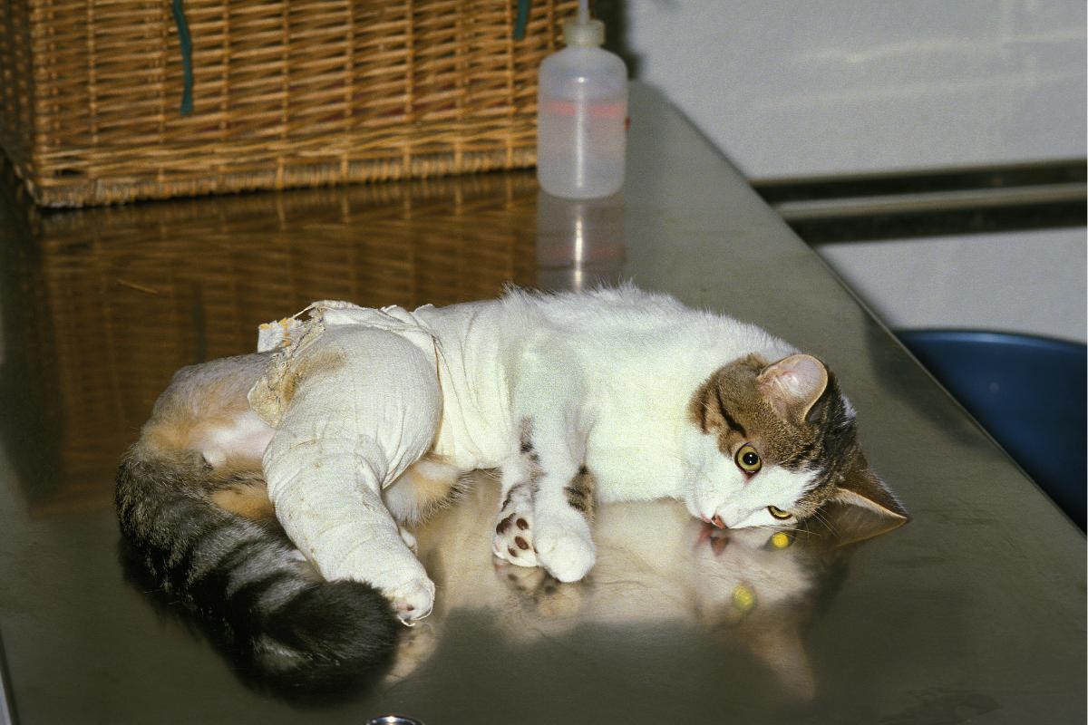 La ataxia posterior o incoordinación de las patas traseras puede ser causada por lesiones medulares en la región toracolumbar, traumatismos en la columna vertebral o fracturas y luxaciones vertebrales provocadas por golpes, atropellos, accidentes o caídas desde gran altura. Por ejemplo, si el traumatismo ha causado un daño entre los segmentos T3 y L3 —es decir, en la zona toracolumbar—, se ve afectado el tercio posterior del cuerpo de nuestros pequeños felinos, lo que puede provocar los siguientes síntomas: