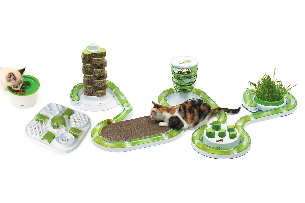 Hay varios modelos de estos comederos. Los más sencillos constan de una plataforma con una tapa de silicona de varios agujeros. Por ellos se introduce el alimento seco y el gato debe acceder a él metiendo las patas para ir sacando las bolitas prácticamente de una en una. De esta forma, es imposible que engulla la comida. Otros modelos son más sofisticados y se disponen en vertical, con varias rampas por las que el gato debe hacer caer el pienso para consumirlo en una bandeja inferior. También hay comederos de este tipo que cuentan con una bandeja sobre la que se puede poner la comida húmeda. En Catit encontrarás diferentes modelos de comederos antivoracidad para gatos que te ayudarán a evitar que tu gato coma sin masticar.