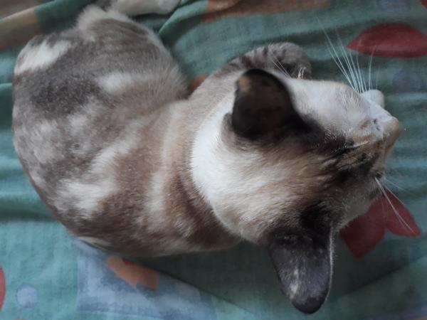 Mi gata ya tiene 4 años y a la edad de 1 año y medio mi papa la encontró en su trabajo y decidio adoptarla, en ese entonces ella estaba en huesos.