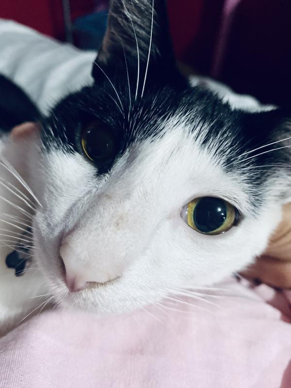 Mi gato se quedo atrapado en un árbol, y comenzó a respirar rápido su nariz se mueve muy rápido el no le gusta que le cojan pero ahorra no se suelta de mi .
