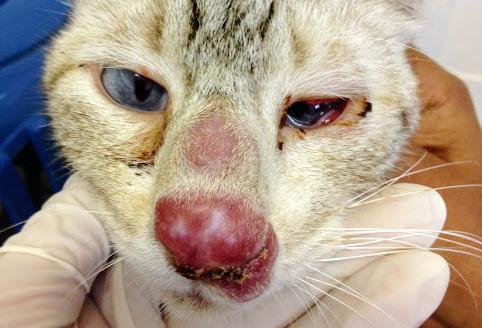 - Traumatismo por arañazos de otros gatos o animales. Las uñas de los animales contienen muchos microorganismos y pueden provocar lesiones muy graves si no se tratan a tiempo. Lo que puede parecer un simple rasguño puede provocar una herida en la nariz del gato o un absceso que deforma la cara del gato u otras regiones del cuerpo (dependiendo de la ubicación).