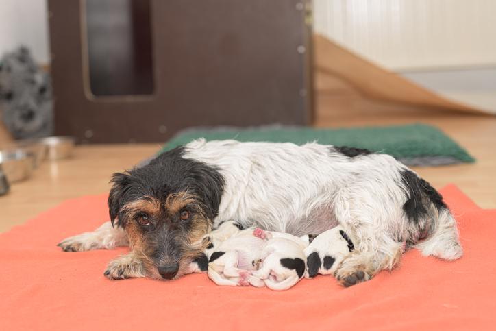 Las perras pasan por una gestación de unos dos meses de duración tras la que llega el momento del nacimiento. Normalmente, este discurre sin complicaciones y la perra es capaz de parir sola, sin ninguna ayuda. De igual manera, en general, estará preparada para encargarse de cortar los cordones umbilicales, ingerir las placentas y demás restos y limpiar a sus pequeños, que nacen con la conducta innata de acercarse hasta una mama e iniciar la lactancia. Esta se prolongará durante sus primeras semanas de vida.