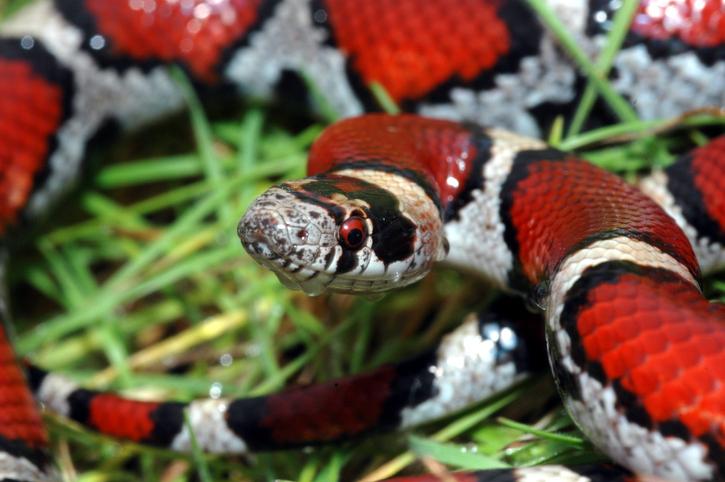 - Falsa coral (Lampropeltis triangulum): se trata de un tipo de serpiente no venenosa con un patrón de color muy semejante al de las serpientes coral (Elapidae), que sí son venenosas.