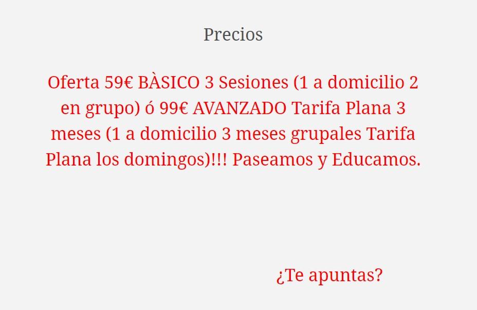 Adiestradores de perros, Educador canino, Adiestramiento en grupo, Modificación de conducta canina, Cursos para cachorros, Cursos para perros adultos