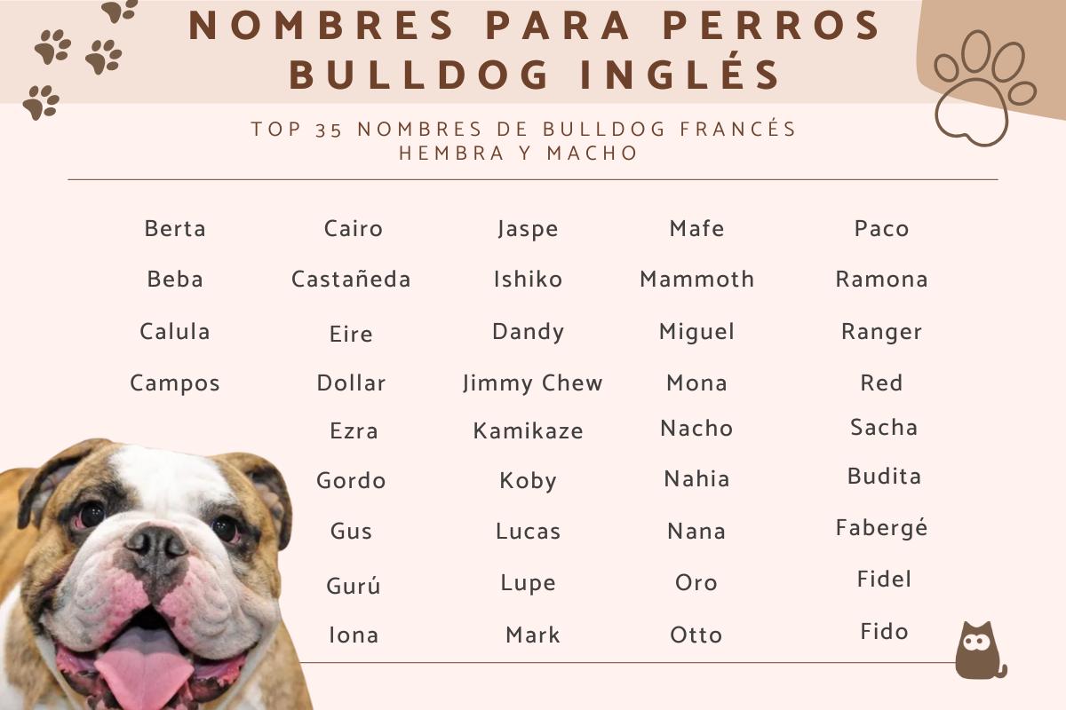 Ahora que ya sabes los tipos de bulldog que existen, vamos a ver los nombres para perros bulldog francés, inglés y americanos que te proponemos.
