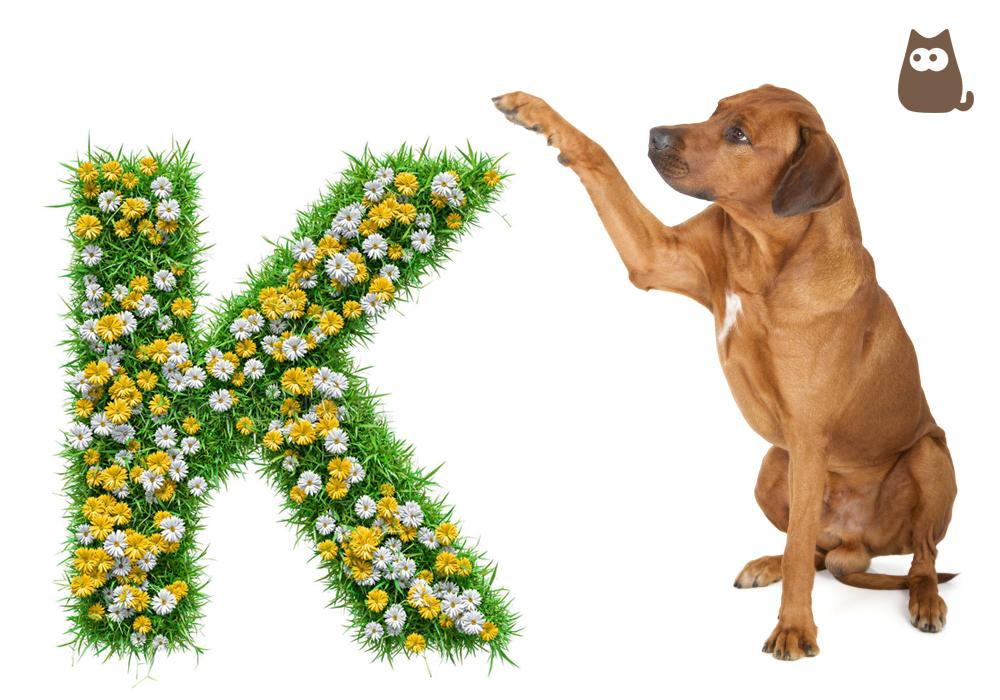 La letra "k" es la octava consonante del abecedario y una de las más sonantes de todas. Al pronunciarla, no pasa por alto el fuerte sonido que genera, la energía y el dinamismo, por lo que los nombres que empiezan por ella encajan a la perfección con perros igual de fuertes, activos, enérgicos y alegres. Así mismo, debido a su origen[1], se ha relacionado la letra "k" a la guerra, y es que su grafía podría representar perfectamente una mano o puño alzado. Por ello, también denota liderazgo.